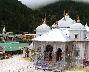Built from white granite, the Gangotri Temple stands as a symbol of purity and devotion. The temple's simple yet elegant architecture blends seamlessly with the pristine environment. Near the temple, Bhagirath Shila, a sacred rock, marks the spot where King Bhagirath is believed to have meditated.