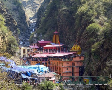 Gangotri Temple opens in May and remains accessible until November, after which the idol is moved to Mukhba village for the winter. Devotees believe that bathing in the icy waters of the Bhagirathi River, originating from Gaumukh Glacier (18 km away), washes away sins and grants spiritual liberation.