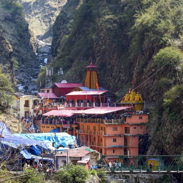 Yamunotri Temple, nestled in the western Garhwal Himalayas of Uttarakhand, is the revered source of the sacred Yamuna River. Situated at an altitude of 3,293 meters (10,804 feet), this temple is dedicated to Goddess Yamuna, who is believed to be the provider of life and purity. It is the first stop of the Char Dham Yatra, drawing thousands of pilgrims every year.